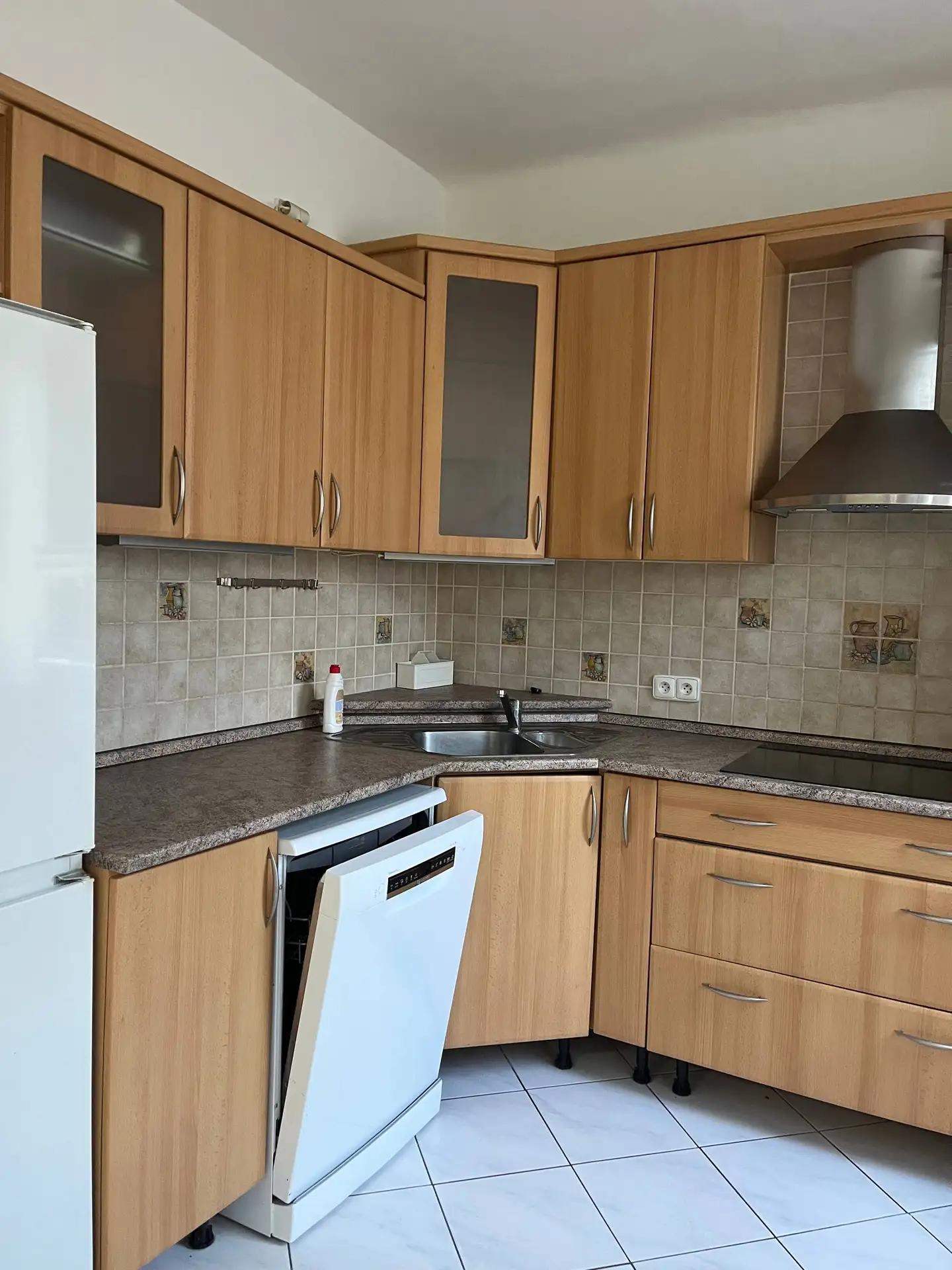 Kuchyň je vybavena veškerou potřebnou technikou: myčka nádobí, lednice, trouba, varná deska a mikrovlnná trouba. Kromě toho je v koupelně k dispozici pračka, takže byt splňuje požadavky na komfortní a praktické bydlení bez nutnosti pořizovat další vybavení.