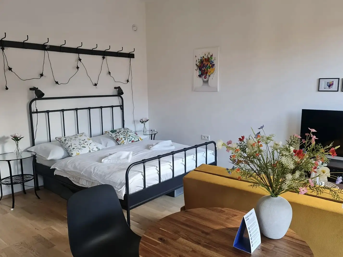 Dispozice je řešena chytře a funkčně v rámci jednoho otevřeného obytného prostoru. Vytváří se tak příjemná zóna pro odpočinek a bydlení, která je zároveň využitelná i pro pracovní kout. Samostatným doplňkem je zázemí, které zvyšuje komfort — k dispozici je sklep (skladovací prostor), což pomáhá udržet byt přehledný. Pro zpříjemnění pobytu je k dispozici balkon a terasa, které umožňují trávit čas venku bez nutnosti opouštět komfort domova.
