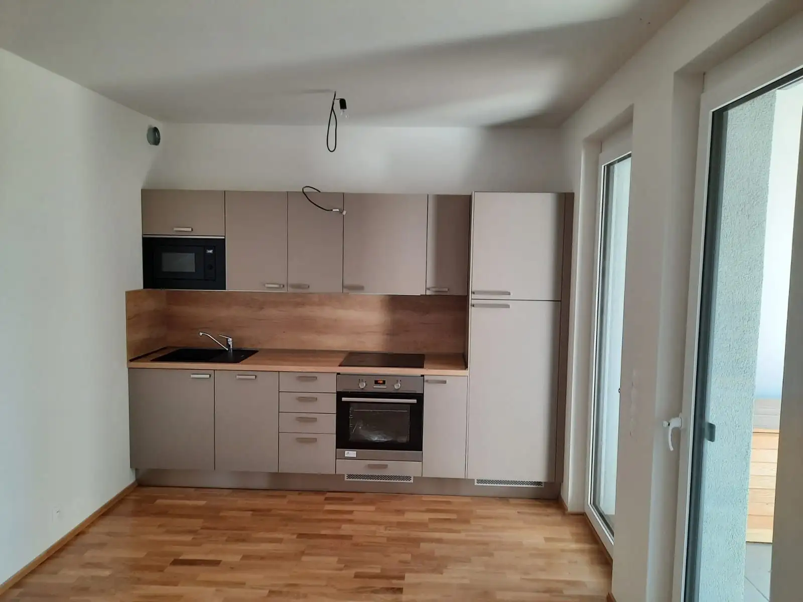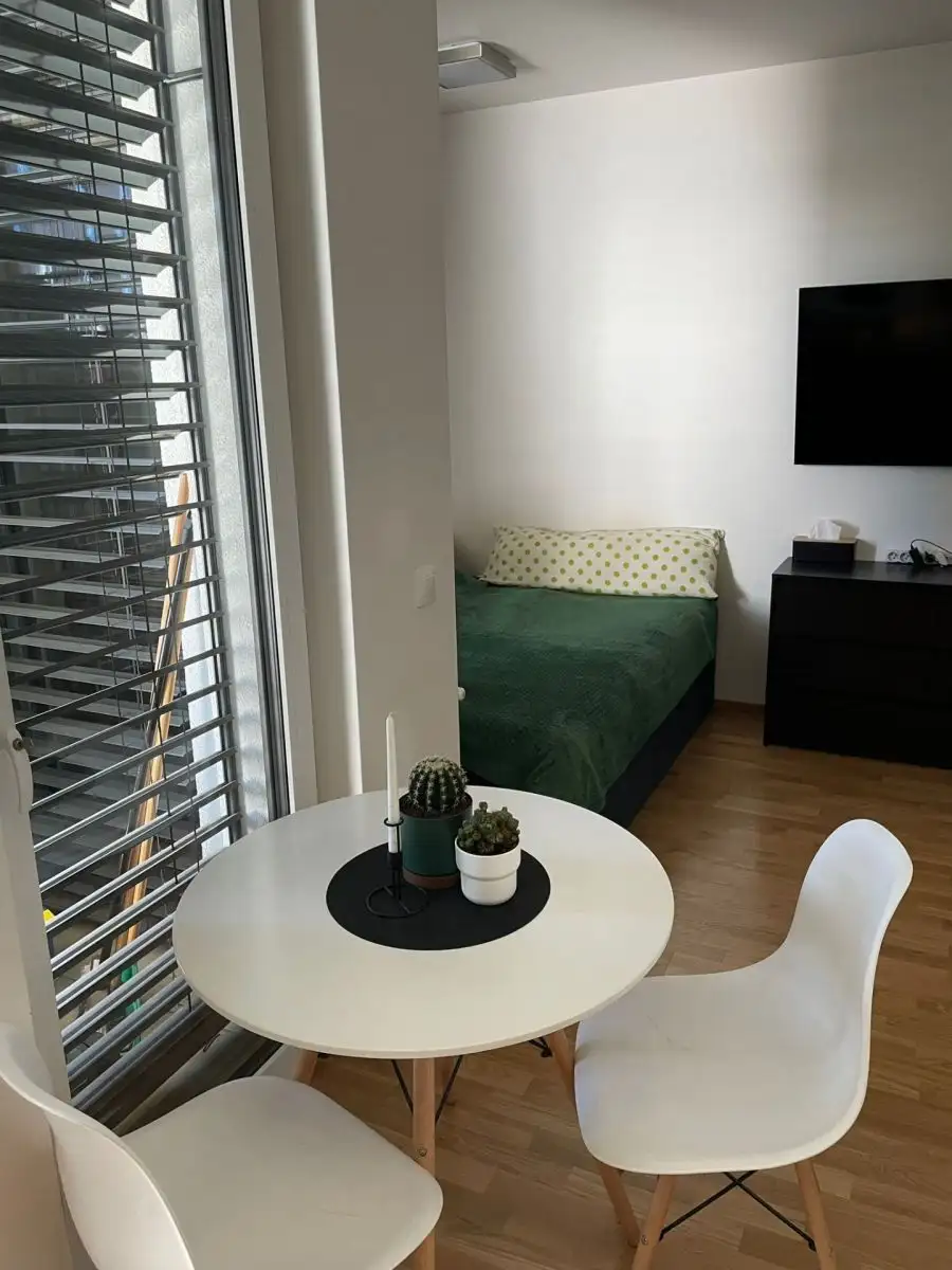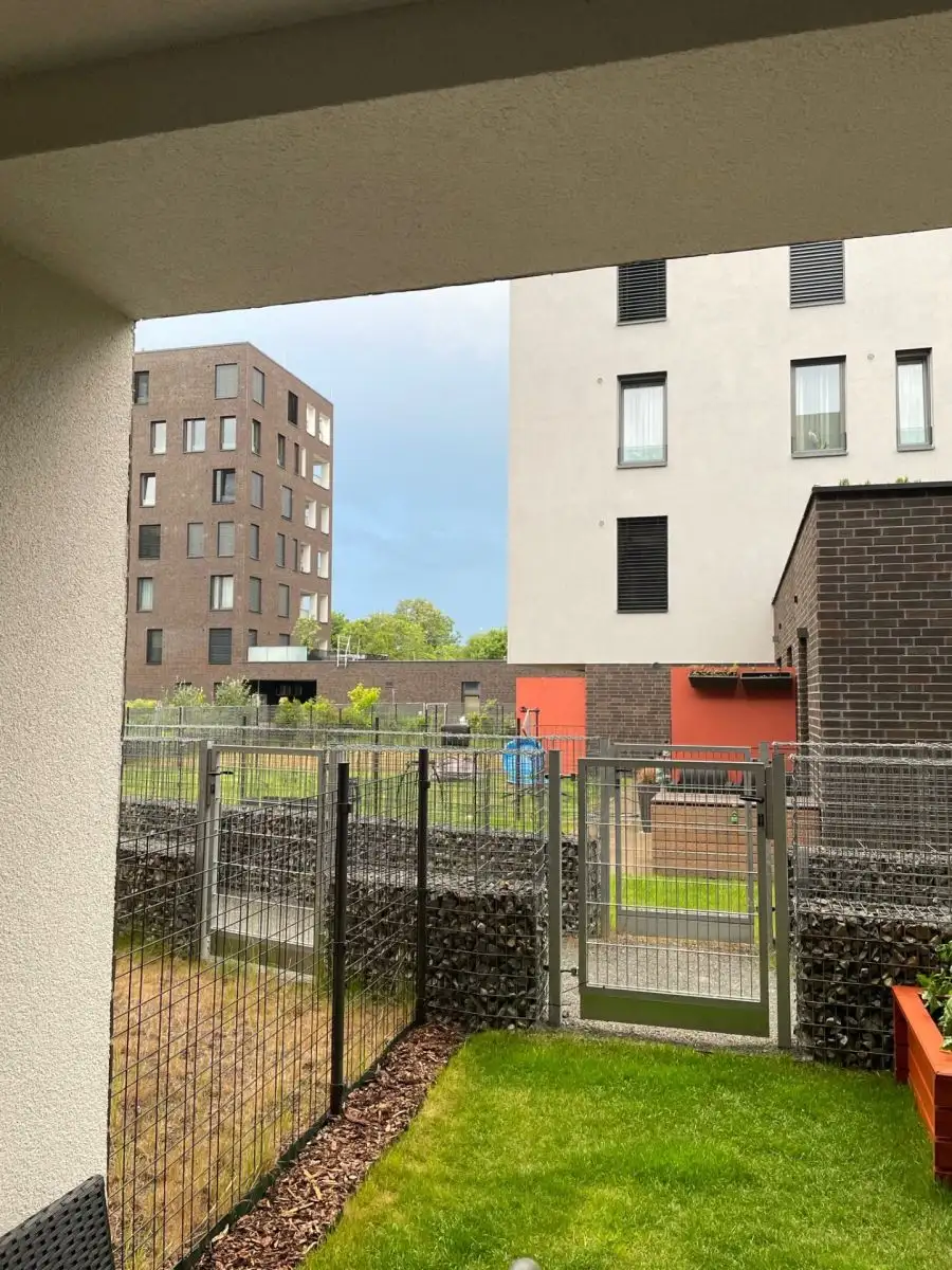 Dispozice je řešena jako praktický open space 1+kk, kde je obývací/ložná část plynule propojena s kuchyňským koutem. Prostor je tak maximálně využitelný pro běžný každodenní život i pro chvíle odpočinku. Zázemí bytu doplňuje možnost vyjít ven přímo na terasu (5,6 m²) a dále využít přilehlou zahradu o výměře 28 m², což je skvělé například pro ranní kávu, relax nebo volnočasové aktivity v soukromí.