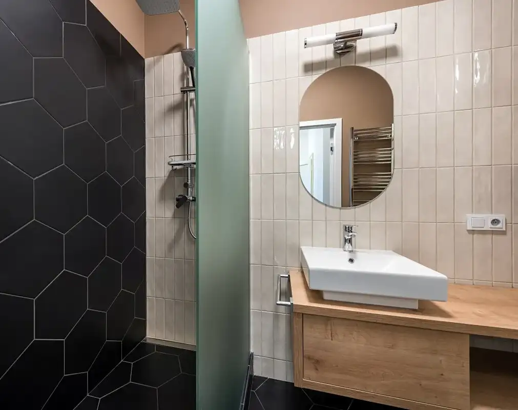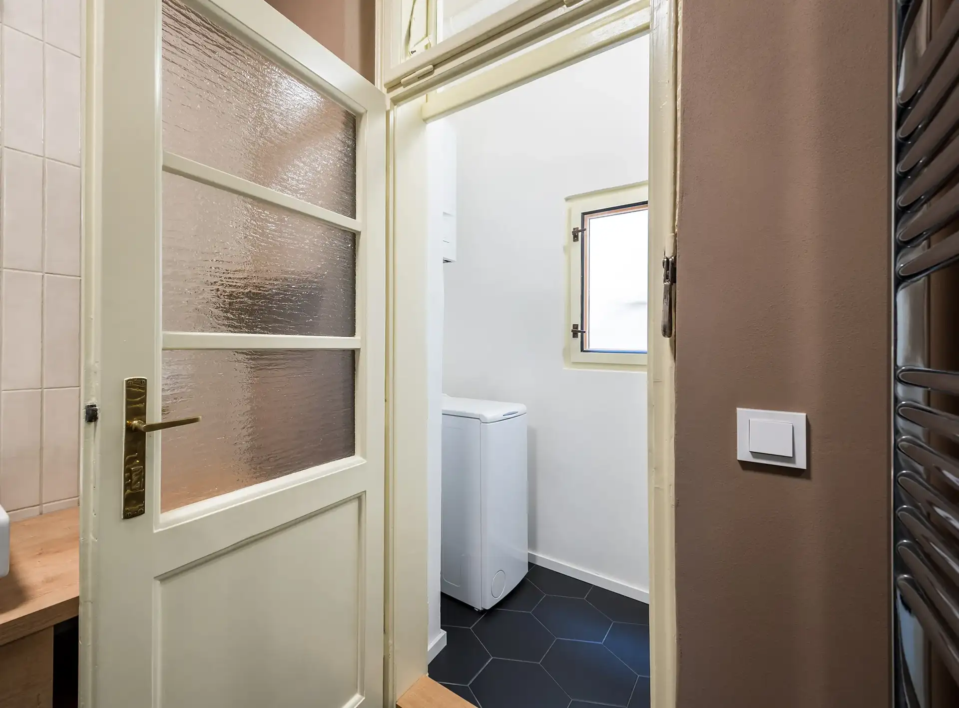 Byt je částečně vybaven, v kuchyni najdete základní spotřebiče, jako je lednice a sporák. Koupelna je v dobrém stavu a je vybavena sprchovým koutem. Celkově je byt udržovaný a připravený k okamžitému nastěhování.