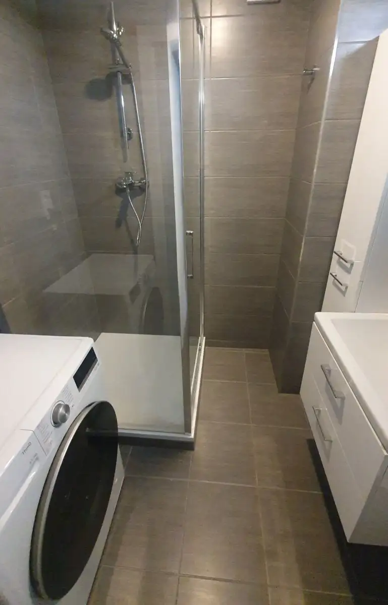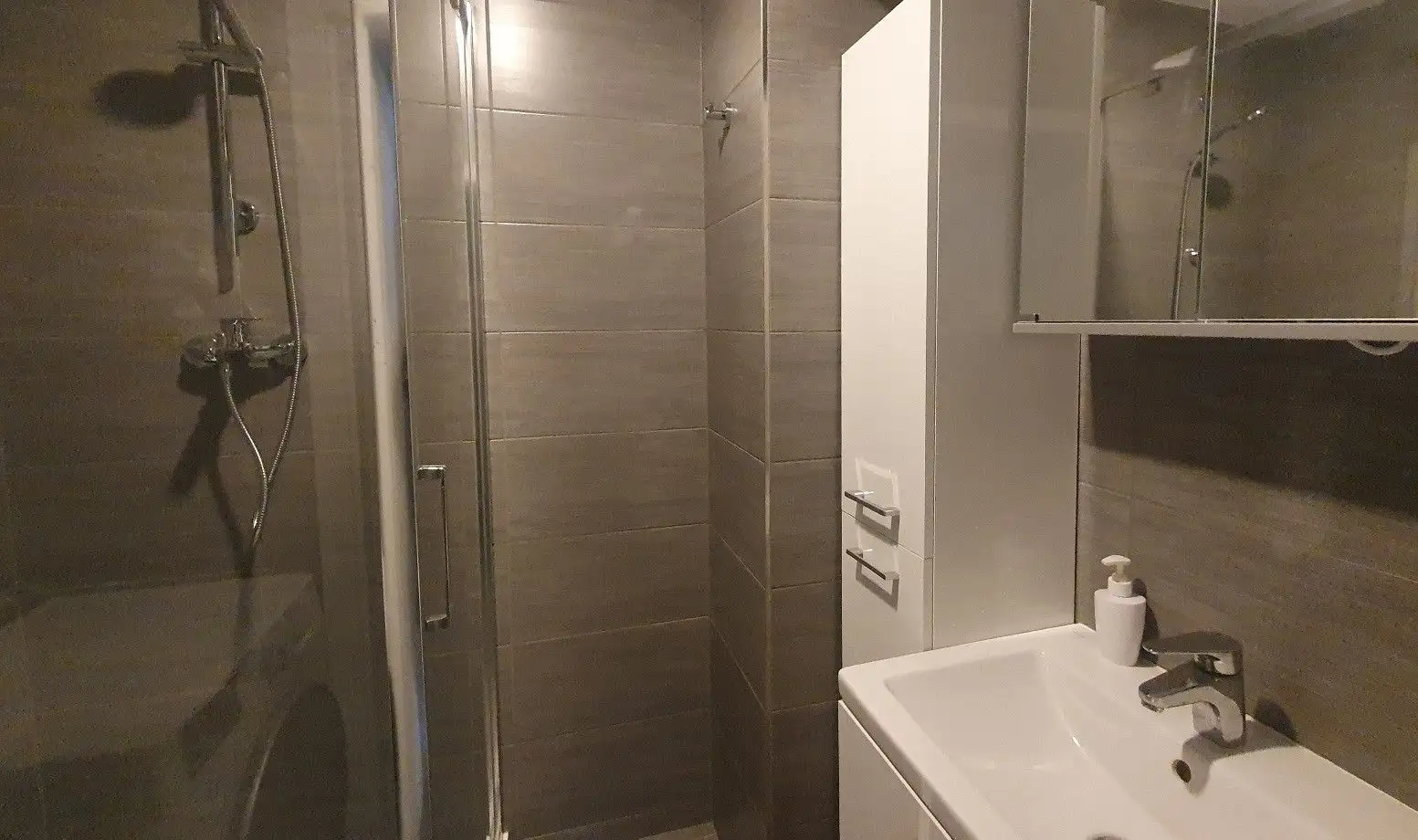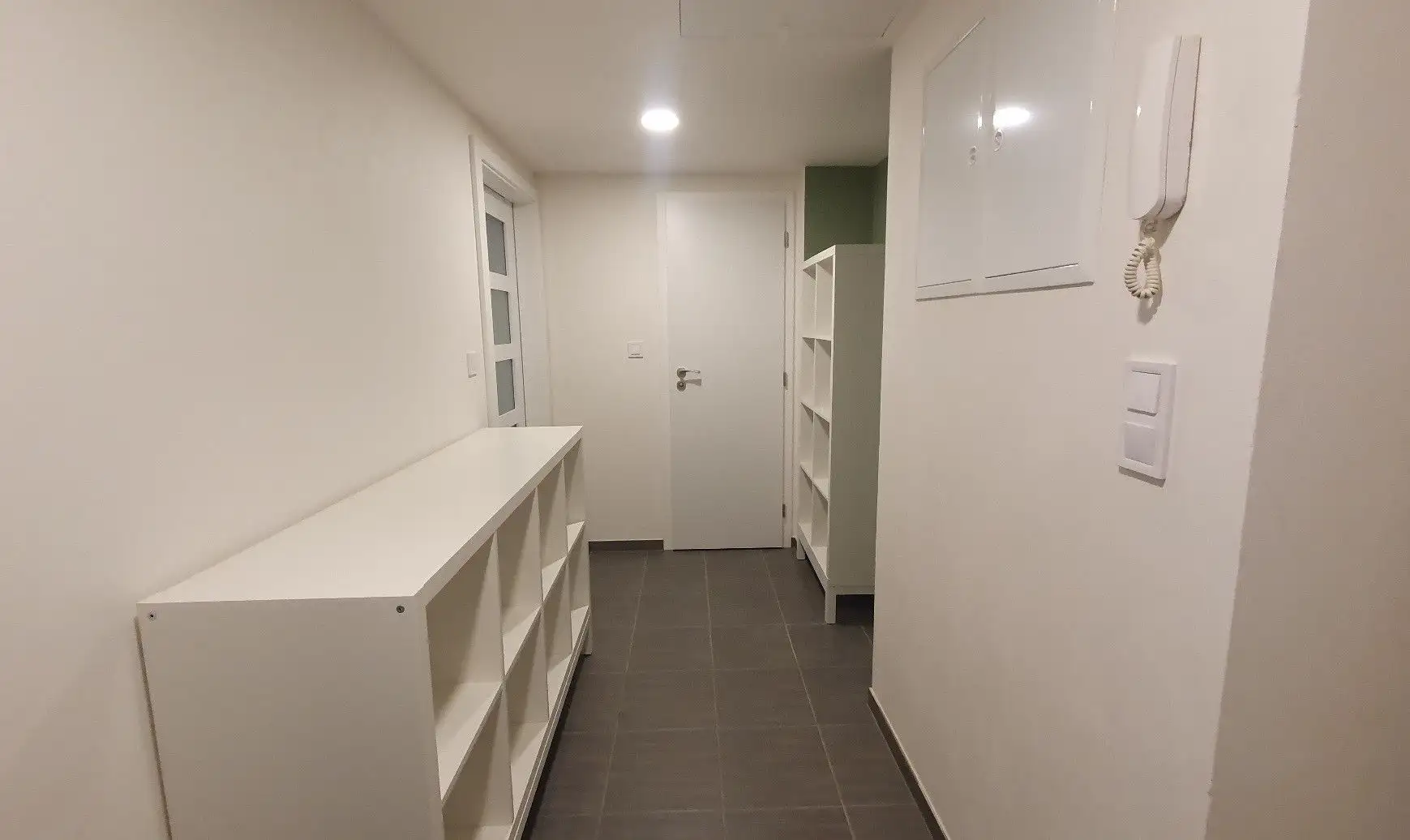 Interiér je plně vybavený. Kuchyň je vybavena potřebným nábytkem a zajišťuje pohodlné vaření. V obývací části i v ložnici je připraveno odpovídající zařízení pro každodenní bydlení. Součástí vybavení je pračka se sušičkou a v koupelně je sprchový kout. V prostoru nad chodbou se navíc nachází další úložný prostor, který pomáhá udržet byt přehledný a organizovaný. Samostatná komora cca 6 m² je ideální na sezónní věci, skladování nebo jako rozšíření úložných možností.