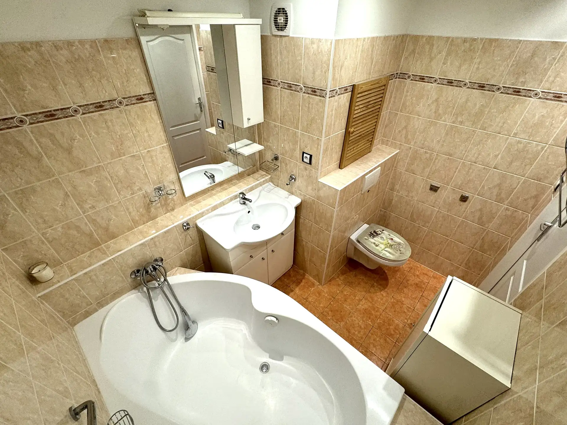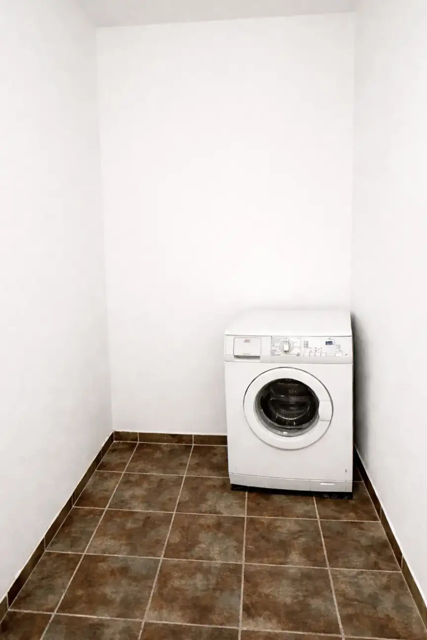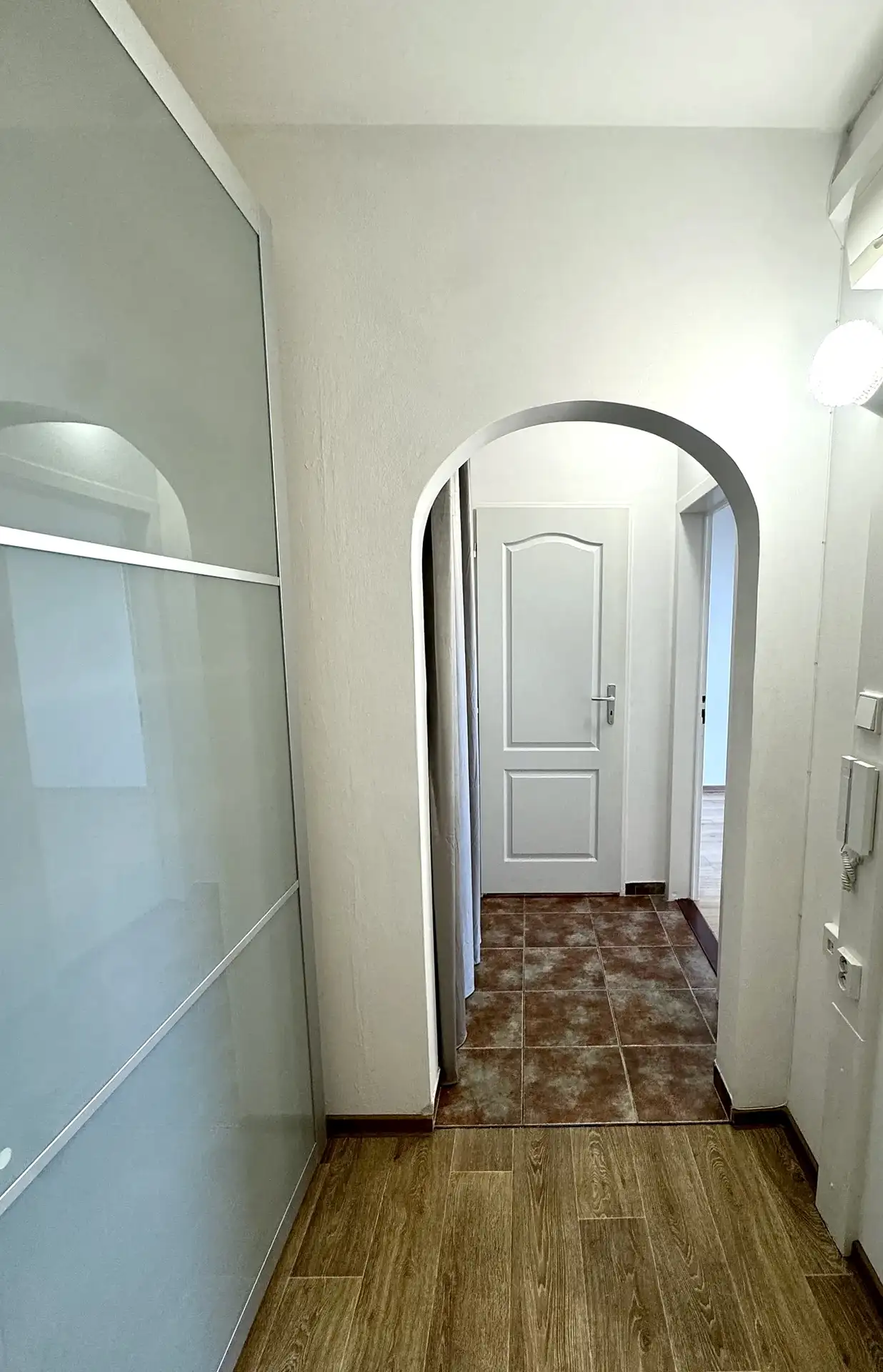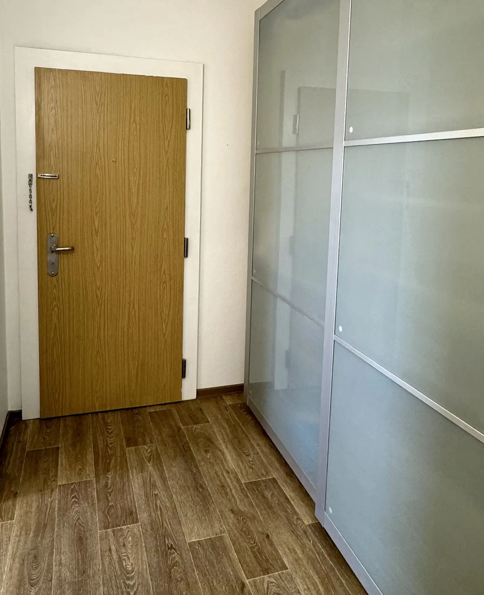 Dispozice bytu je řešena tak, že k dispozici je samostatná kuchyně, samostatná ložnice a obývací část, která je doplněna vestavěnou skříní. V koupelně je vana a WC. V bytě nechybí ani prostorná předsíň s úložnými místy, takže si pohodlně uspořádáte věci při vstupu. Součástí vybavení je také vyhrazená zóna pro pračku. Celkově byt působí funkčně, vzdušně a je vhodný pro ty, kteří chtějí bydlet v klidné lokalitě, ale zároveň mít dobrou dostupnost do centra.