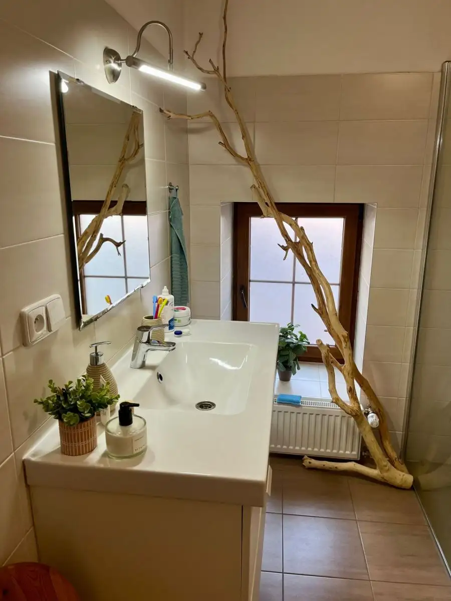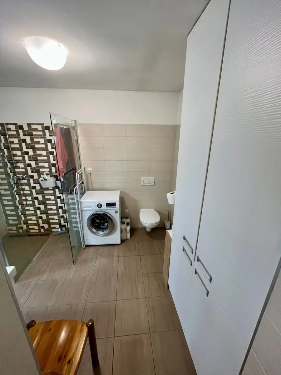 Dispozice je prakticky rozvržená: samostatná kuchyň je oddělená od obývací části, což oceníte při vaření i běžném provozu domácnosti. Navazující obývací prostor poskytuje komfort pro odpočinek a volný čas. Samostatná ložnice je vhodná pro klidné spaní a soukromí. Koupelna je vybavena sprchovým zázemím a je zde také WC.