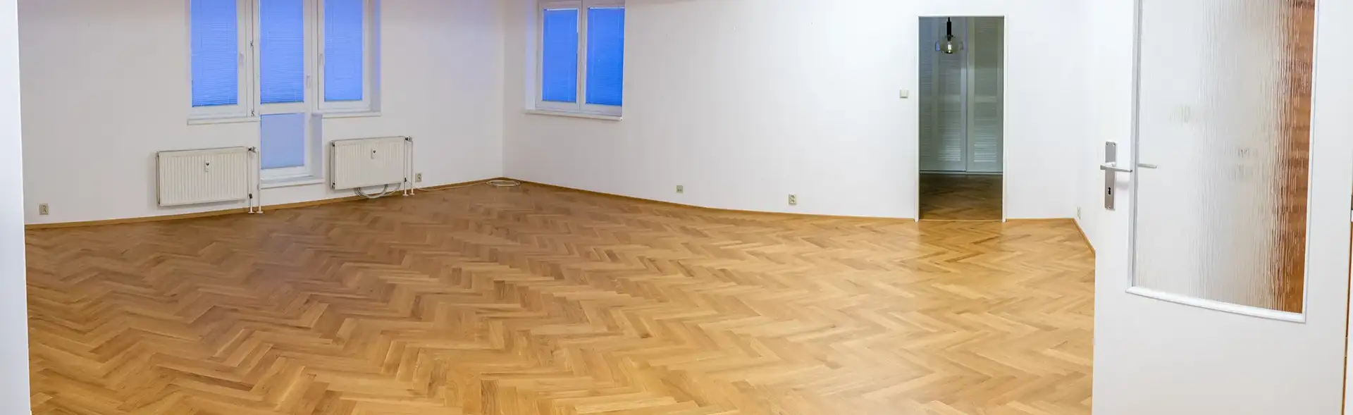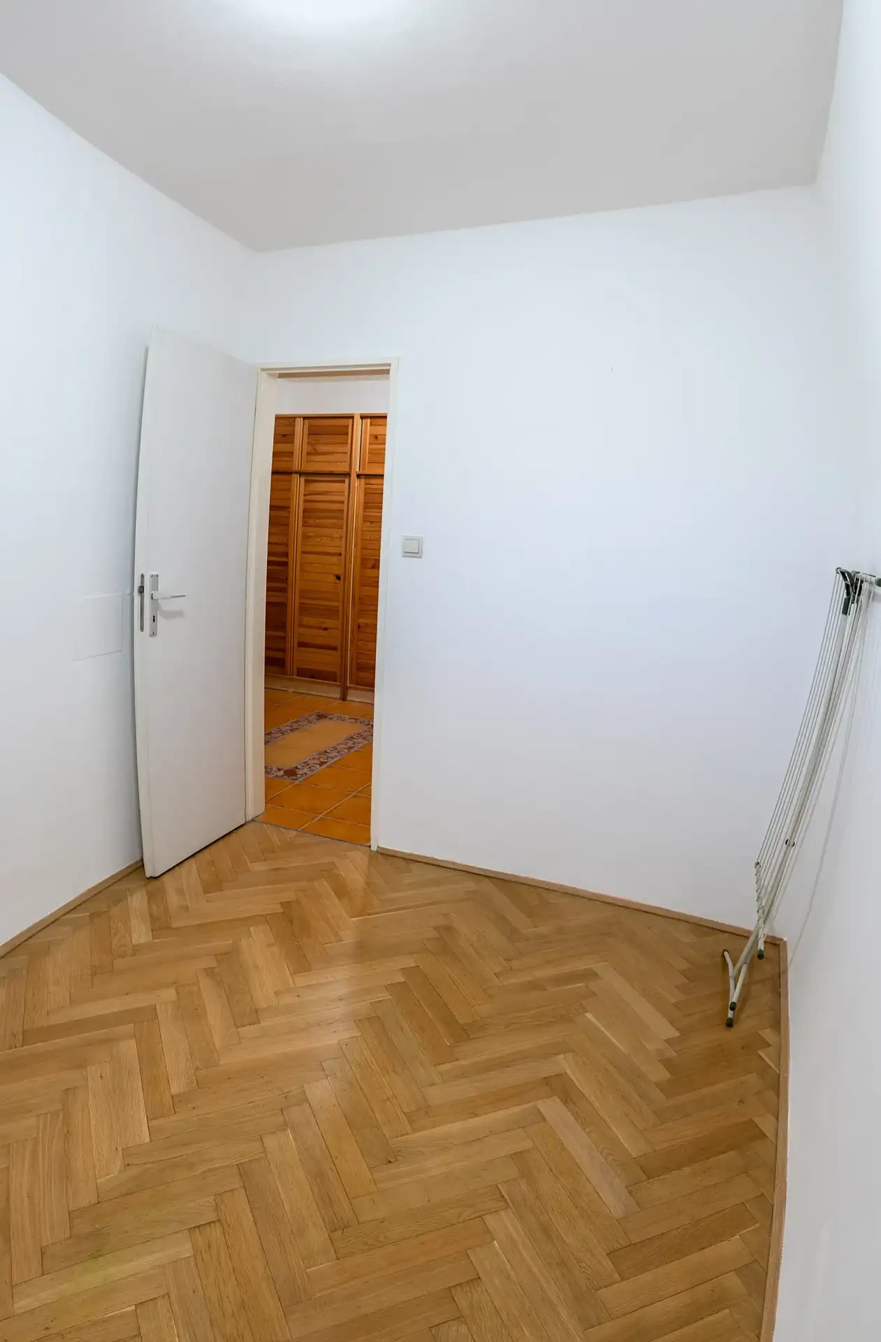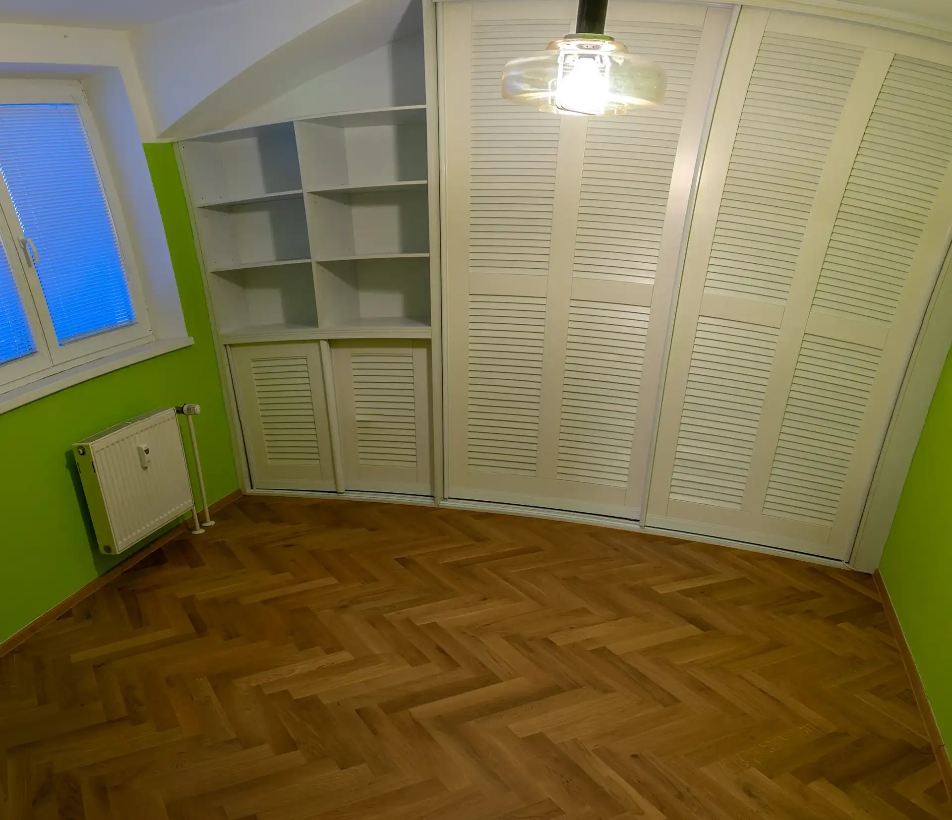 Dispozice bytu je velmi praktická: dva menší pokoje doplňuje prostorný obývací pokoj a samostatná, výrazně kapacitní kuchyně. Půdorys je navržen tak, aby jednotlivé části bytu tvořily přirozené zóny – klidová zóna pro spánek a odpočinek je oddělená od společenské části. Díky velikosti kuchyně je prostor vhodný i pro rodinné vaření nebo společné posezení.