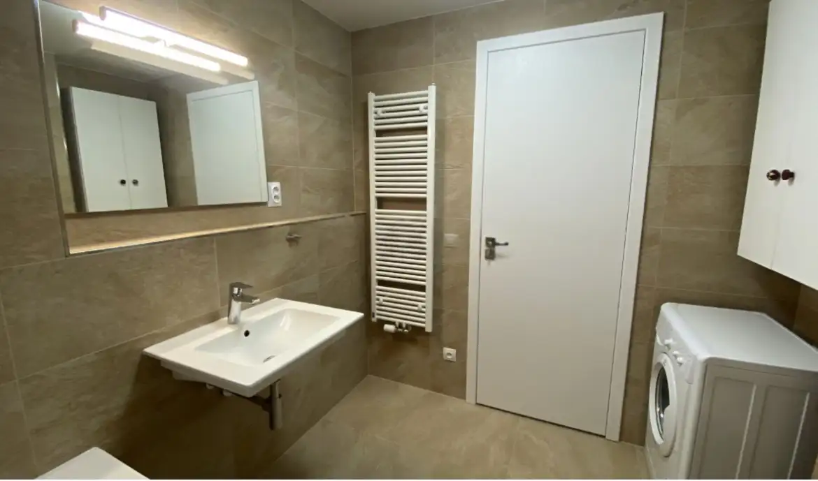 Byt se pronajímá kompletně zařízený. Kuchyň je vybavena veškerými spotřebiči včetně myčky, trouby, varné desky a lednice. Součástí je také nádobí a kuchyňské vybavení, které umožní okamžité nastěhování. V bytě je k dispozici pračka. V ložnici najdete dvoulůžko a skříně, v obývací části pak gauč a pracovní místo – prostor je tak vhodný i pro práci z domova. Vybavení doplňují prvky jako chytré/smart prvky a videotelefon (videodůmofon), elektrické žaluzie a dřevěné podlahy.