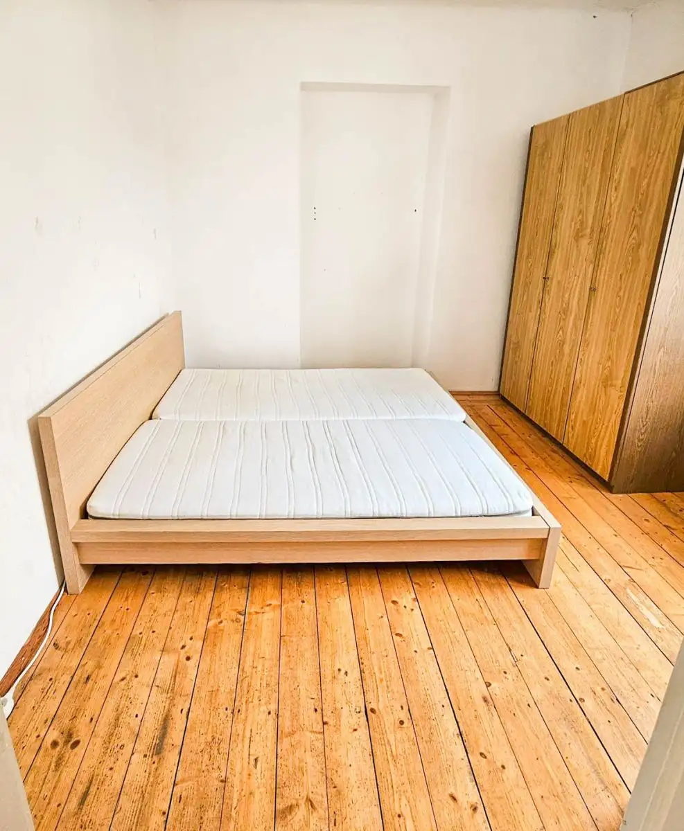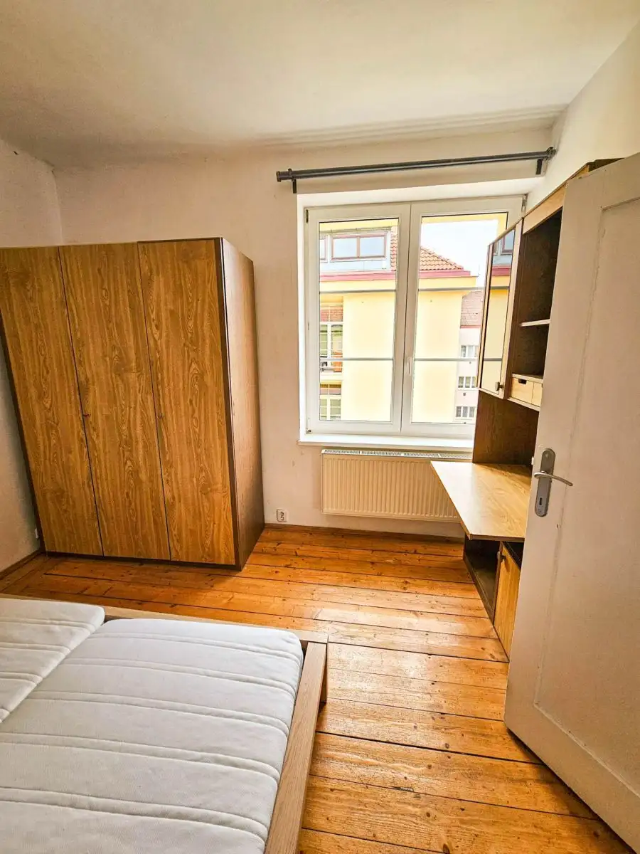 Dispozice: samostatná ložnice, průchozí obývací pokoj a samostatná kuchyň s oknem. Okna směřují do vnitrobloku, což zajišťuje klidné bydlení.