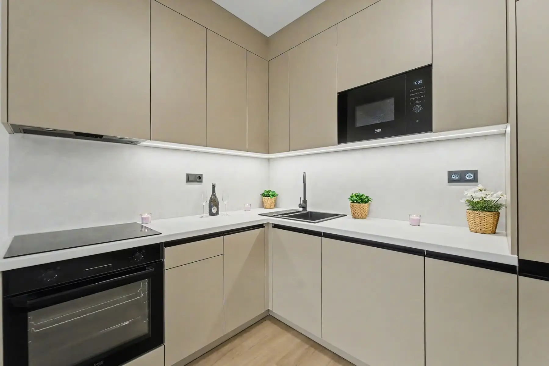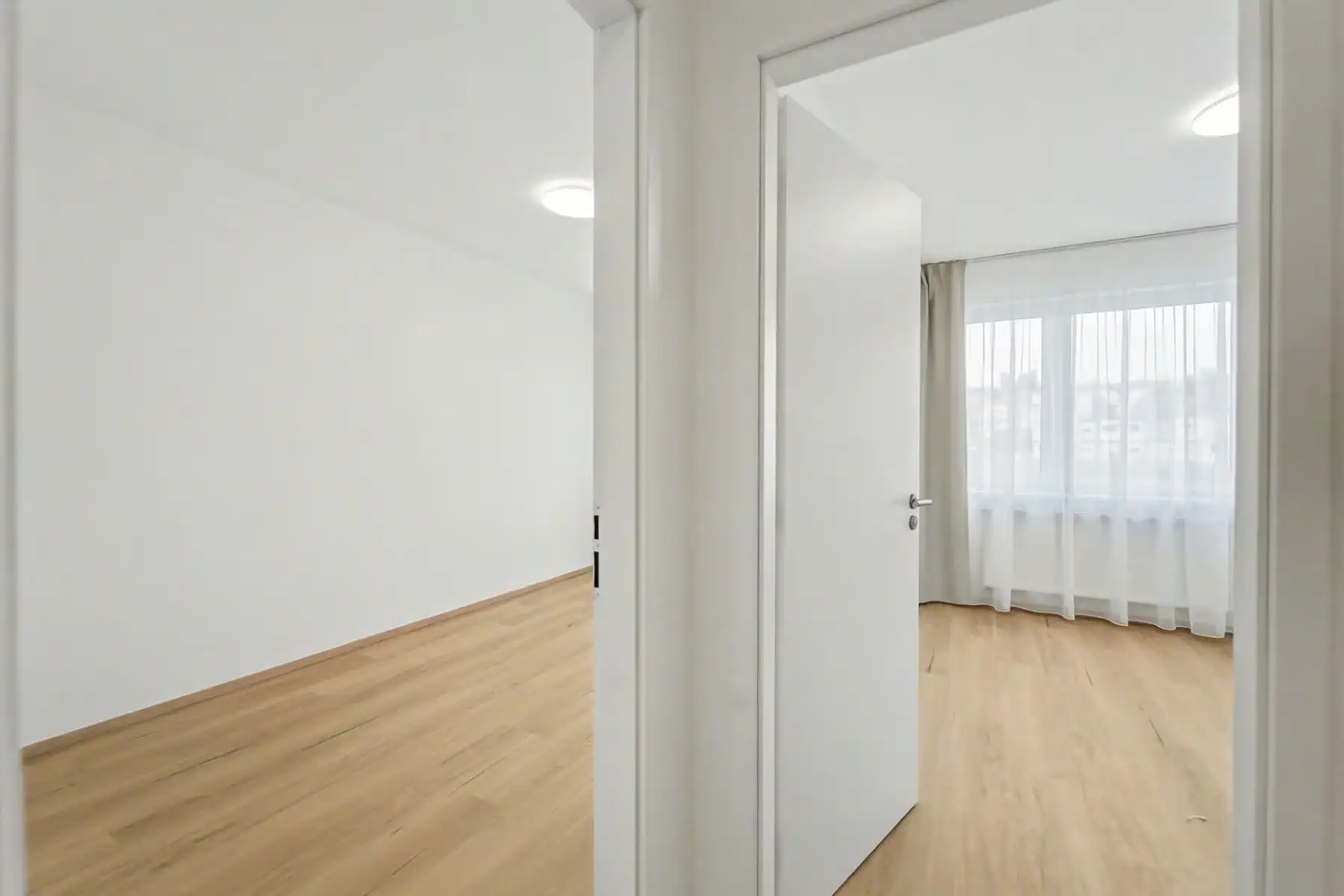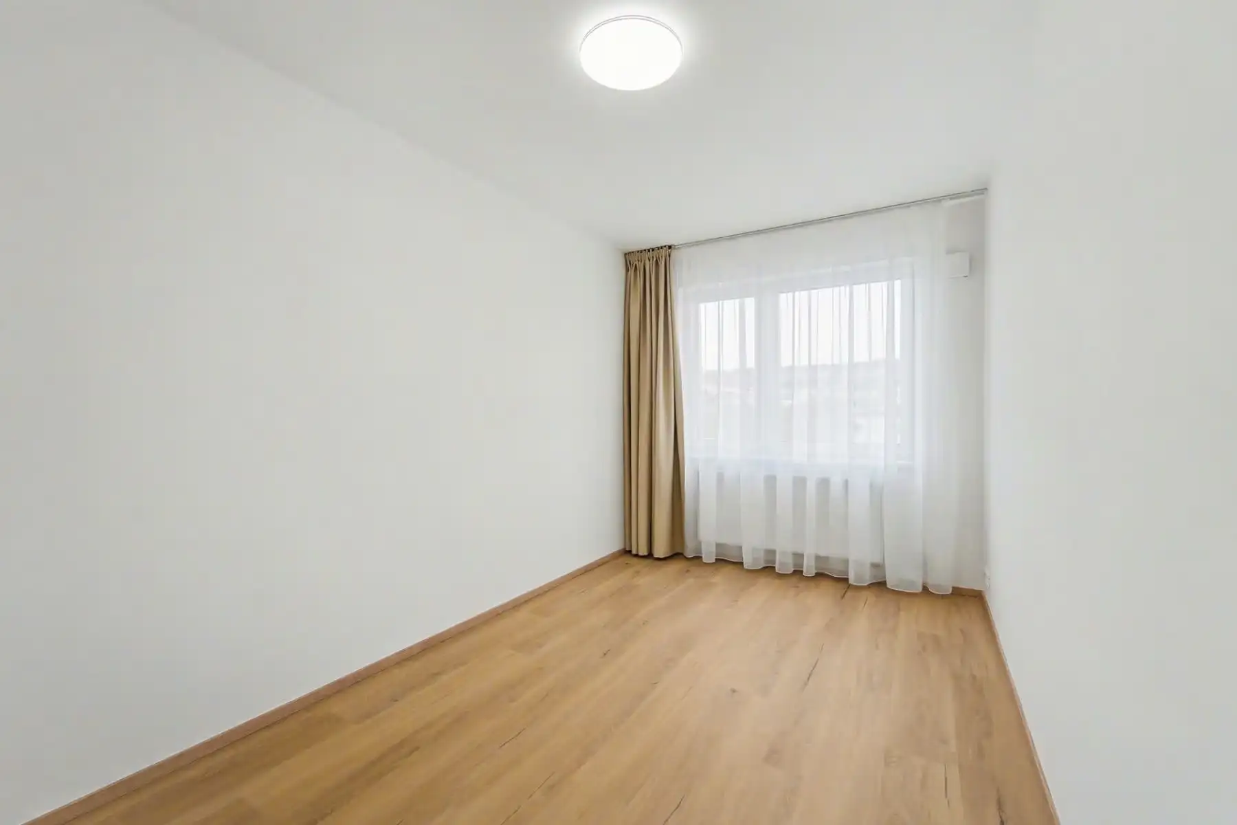 Dispozice je řešená tak, aby byl denní prostor vzdušný a ložnice poskytovaly klid. Byt zahrnuje prostorný obývací pokoj s kuchyňským koutem, dále dvě samostatné ložnice. Součástí jsou kvalitní prvky pro komfort spánku a soukromí – vnitřní zatemňující závěsy a závěsy. Dveře v bytě jsou bezpečnostní, typ NEXT, což přidává na pocitu jistoty.