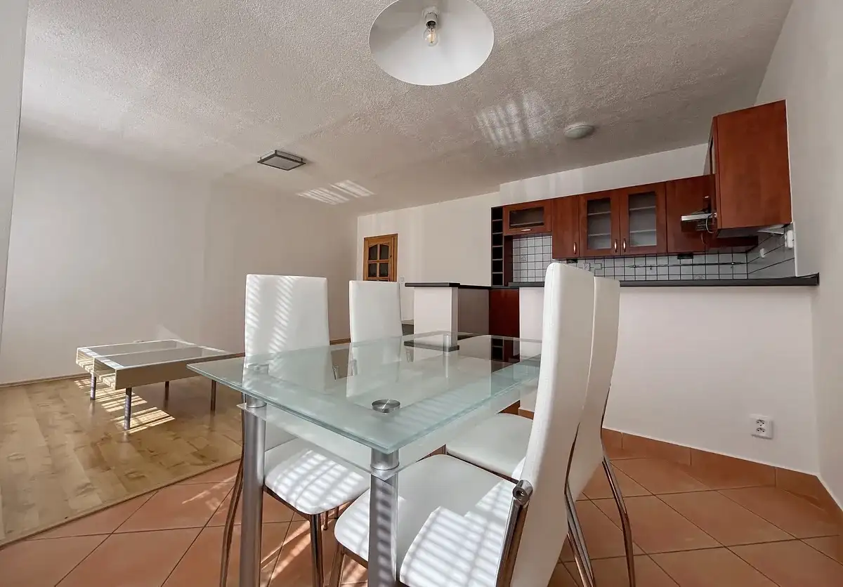 Vybavení bytu je částečné, což umožňuje snadné doplnění nábytkem podle vlastního vkusu. Díky tomu můžete byt postupně vybavit tak, jak Vám bude vyhovovat – a zároveň využít to, co je již připravené. K bytu náleží také sklep o ploše 3 m², který poskytuje další úložné možnosti (sezónní věci, kola, nebo běžné zázemí).